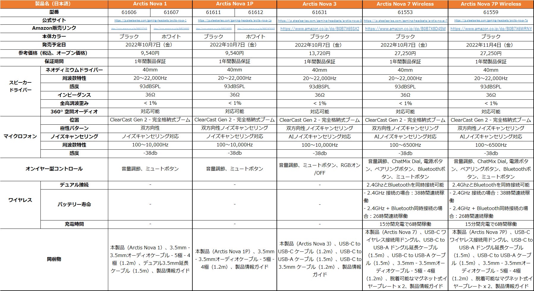※「Arctis Nova 7P」のみ、9月15日(木)より予約受付を開始、11月4日(金)より順次販売開始いたします。