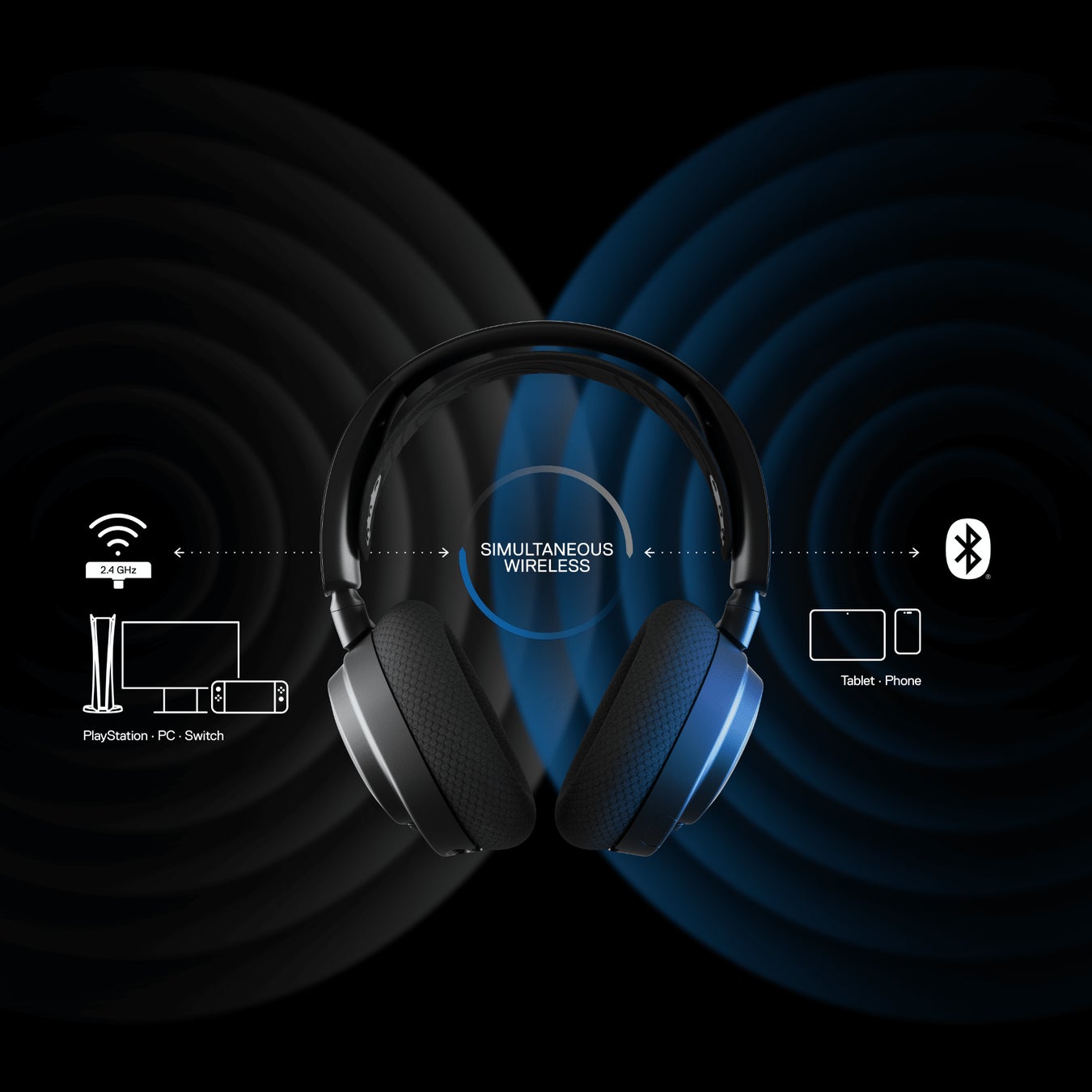 2.4GHz ロスレスワイヤレス接続と、モバイルデバイス向けBluetooth接続の2つのワイヤレス同時接続に対応し、ゲームをプレイしながら、モバイルデバイスでの音声チャットや、音楽を楽しむことが可能です。