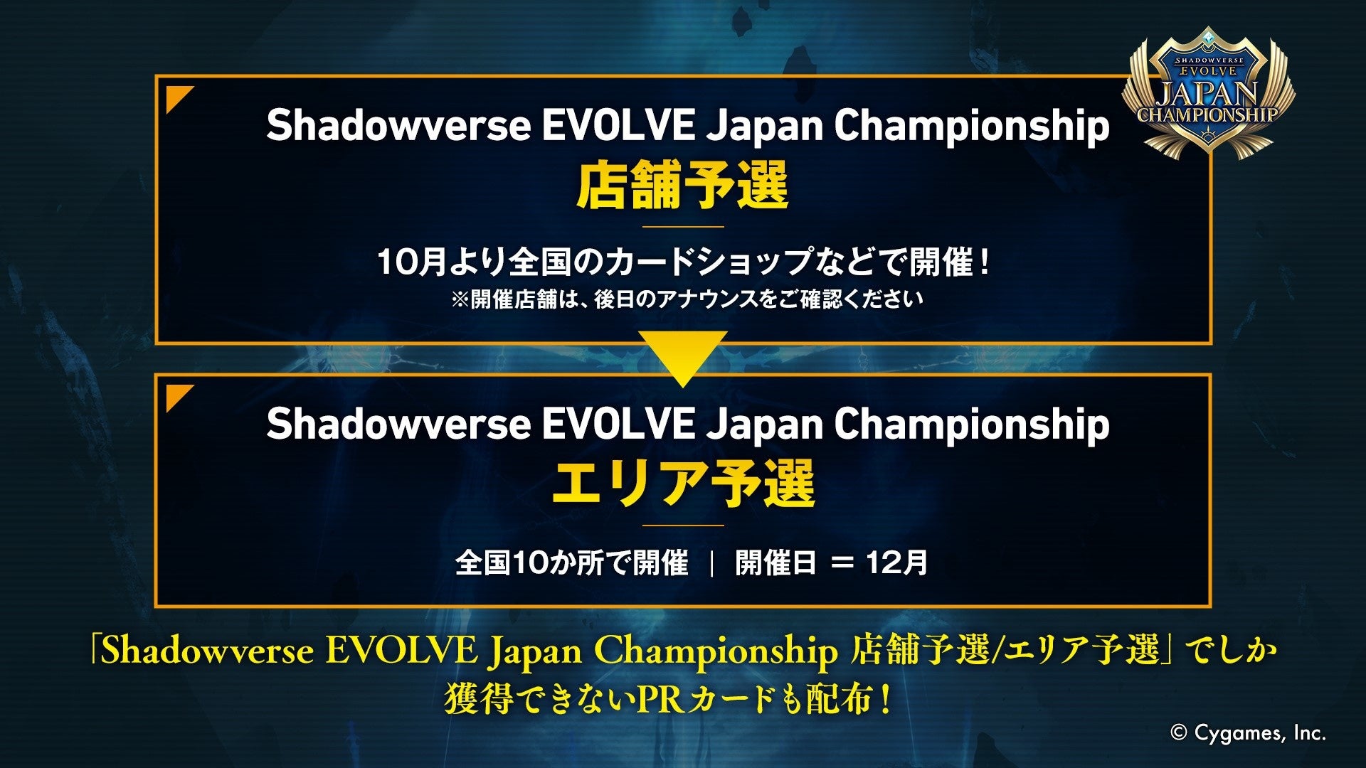 2023年2月に開催予定の「Shadowverse EVOLVE Japan Championship」への参加権利を獲得することが出来る店舗予選/エリア予選の開催月などが決定!