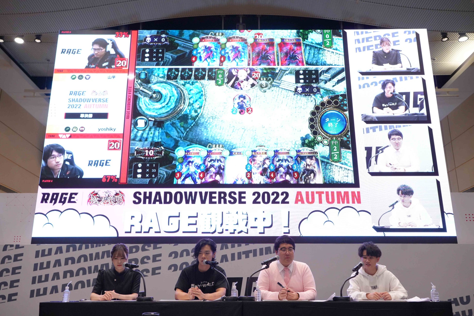 株式会社CyberZ、エイベックス・エンタテインメント株式会社、株式会社テレビ朝日が運営する国内最大級のeスポーツエンターテインメント「RAGE(レイジ)」は、対戦型オンラインTCG『Shadowverse』の大会「RAGE Shadowverse 2022 Autumn」の決勝トーナメントにあたるGRAND FINALSを2022年9月23日(金・祝)に開催いたしました。