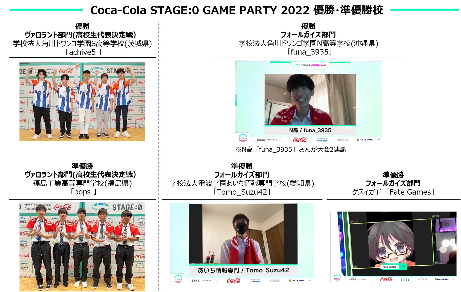『Coca-Cola STAGE:0 GAME PARTY 2022』 ヴァロラント部門では、学校法人角川ドワンゴ学園S高等学校(茨城県)が233チームの頂点に輝きました。