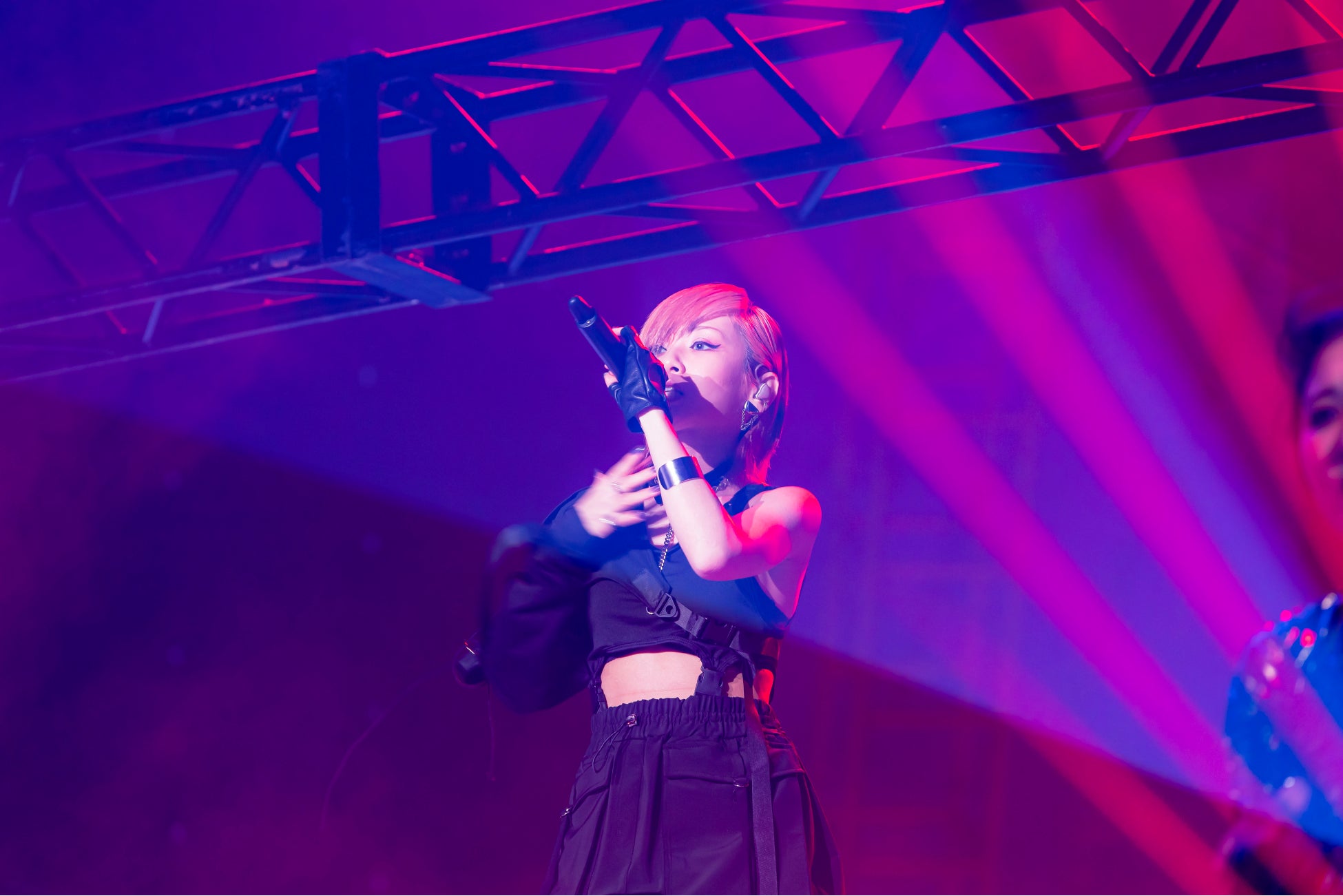 イベントの幕を開けたのは、ふたりのダンサーを従えて登場した女性シンガーのReolさん。レーザーライトとスモークに包まれるなかで歌ったイベントオフィシャルテーマソング「SCORPION」を始め3曲を歌唱。アグレッシブなパフォーマンスで会場を温めたReolさんは、「今日は最後まで楽しんで、今年一番の特別な1日にしてください」と語ってステージを去りました。