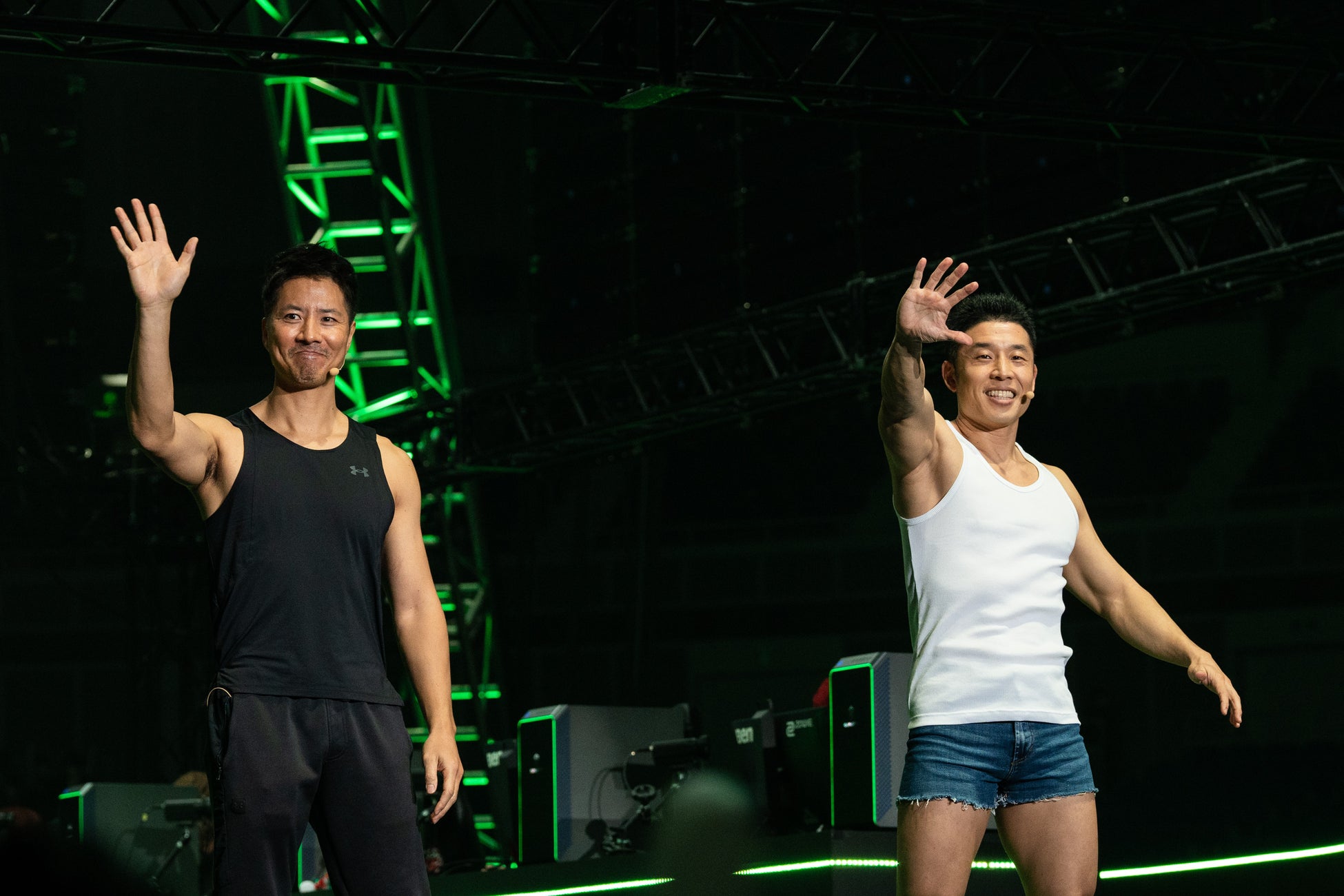 対戦前には「パワーを届けに来た」というケインコスギさんとなかやまきんに君さんがゲストとしてステージに登場。前日にオンライン企画「DUO PRESSURE」に参加していたふたりでしたが、この日はストレッチを教えたり、きんに君さん得意の「パワー!」のパフォーマンスをしたりして会場を湧かせました。
