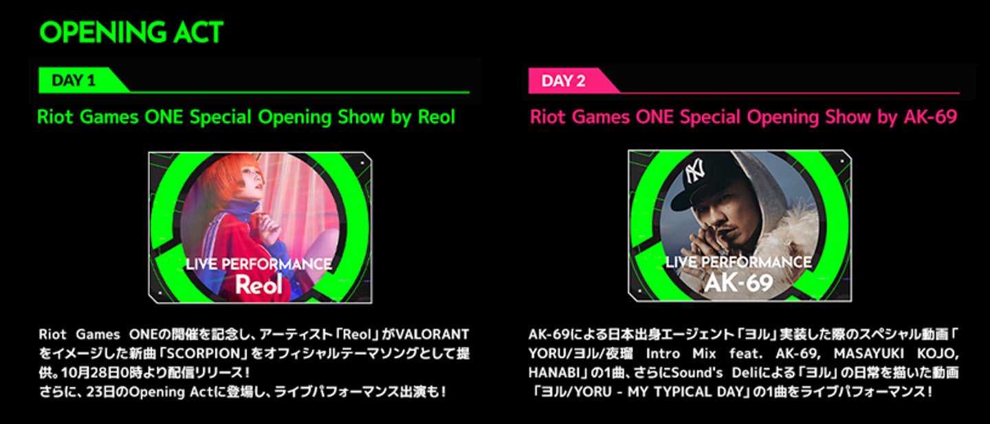 さらに、23日(金)のオープニングでは、Riot Games ONEのオフィシャルテーマソング「SCORPION」を歌う「Reol」によるライブパフォーマンス「Riot Games ONE Special Opening Show by Reol」も行います。