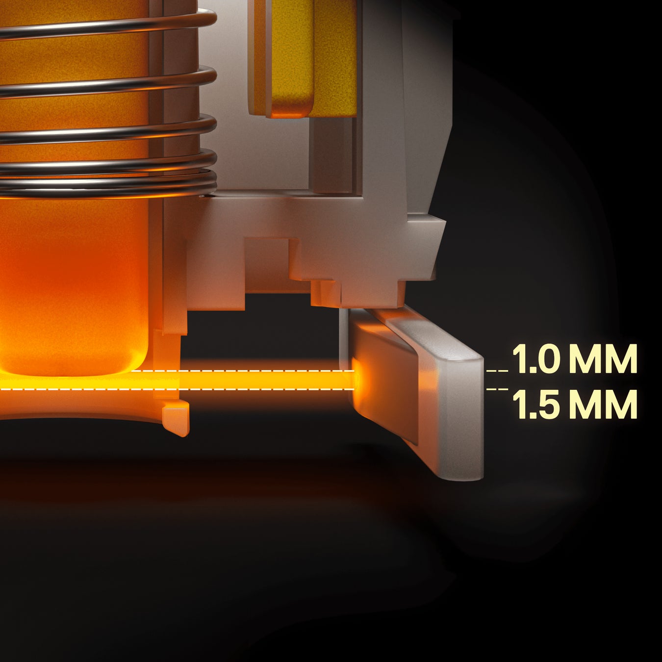 新開発のOptiPoint光学スイッチにより、最短1.0mmアクチエーションと0.2msのレスポンスタイムを実現しました。