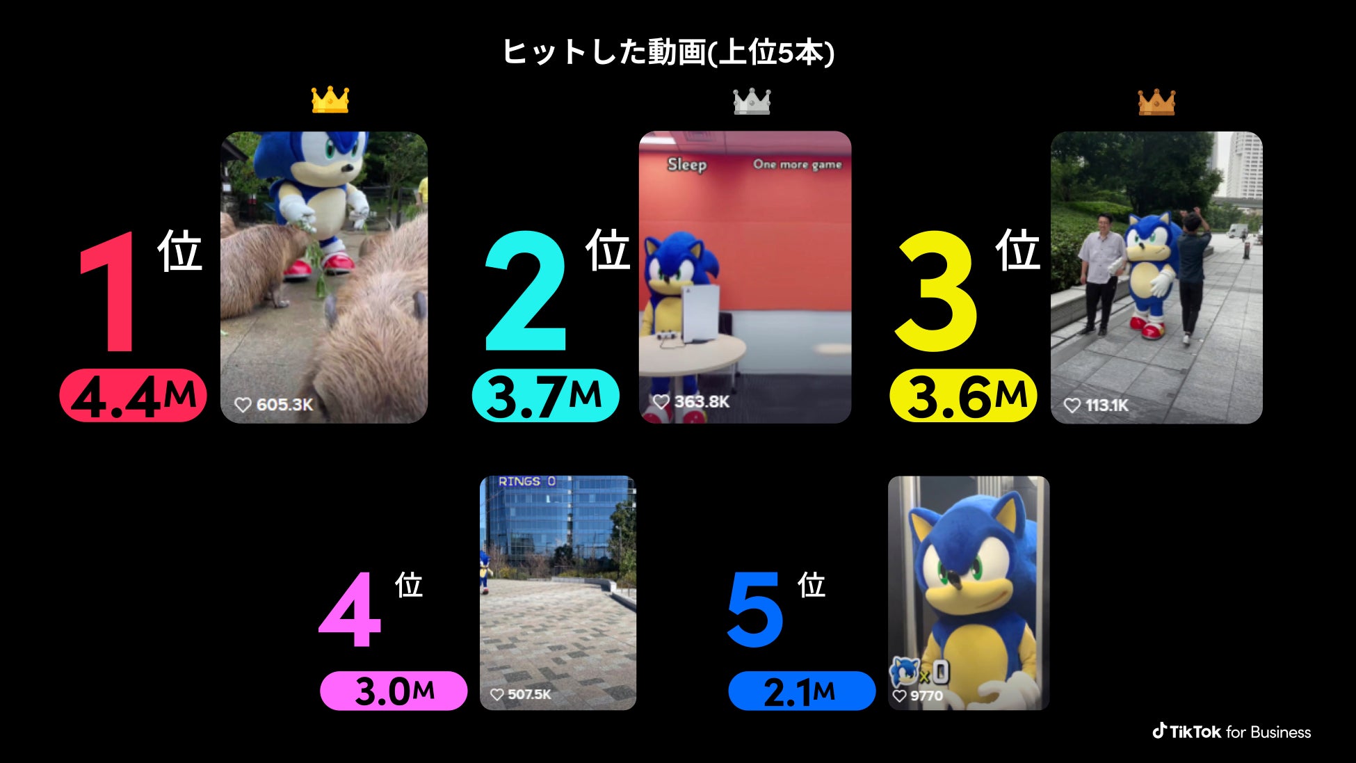 TikTokは他のプラットフォームと比べ、再生回数が伸びやすく、エンゲージメントが圧倒的に高いため、「SEGA」ではユーザーからのコメントへの返信を徹底して行っています。ユーザーは「SEGA」からの返信をUGCとして投稿、それがきっかけでフォロワーが増えるという「ファンがファンを呼ぶ仕組み」が生まれたことも成功要因の一つです。