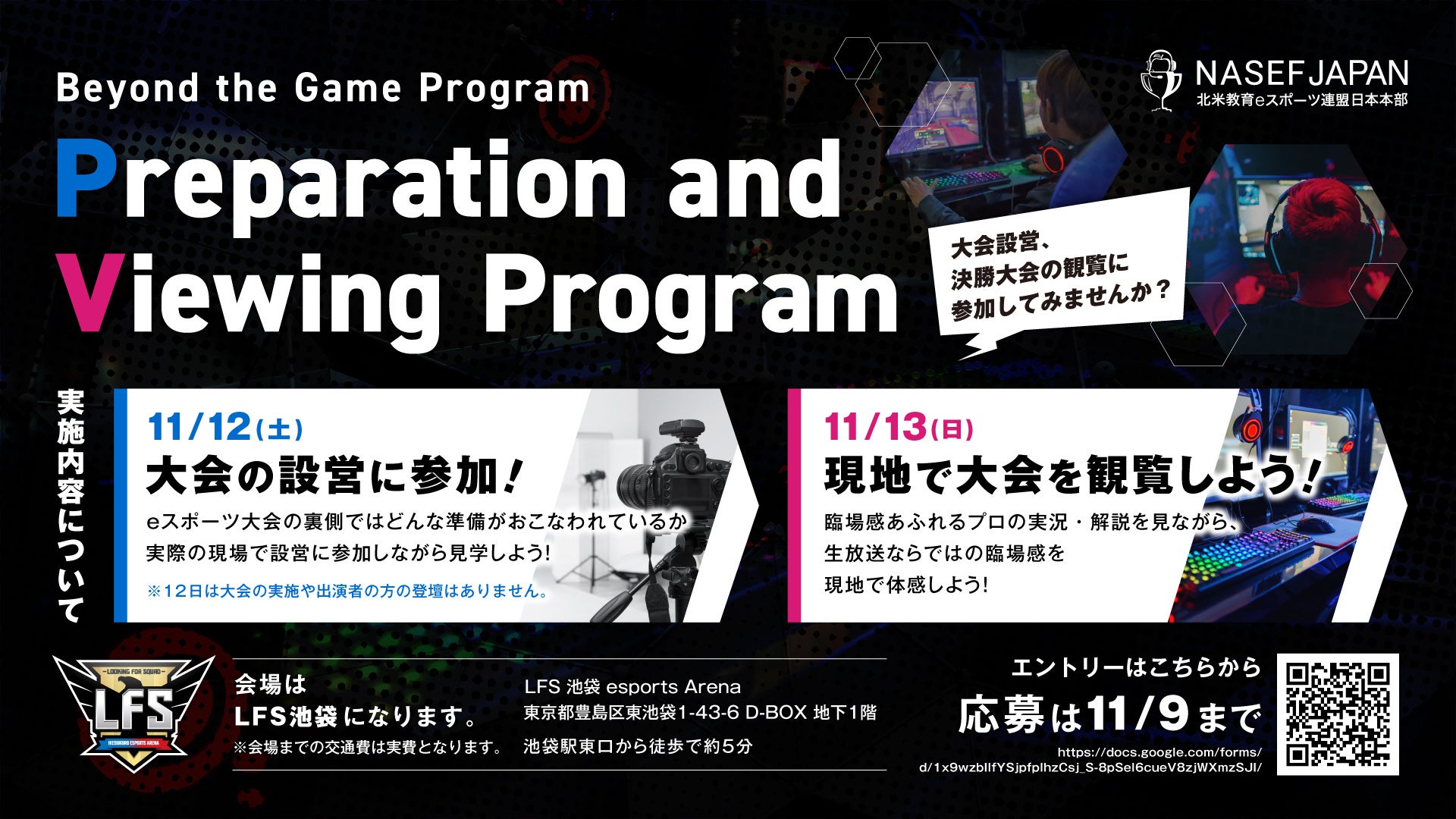 また本大会は、「VALORANT」の競技だけでなく、「Preparation and Viewing Program」と称して大会設営や大会観覧の体験イベントを11月12日(土)、11月13日(日)に実施いたします。