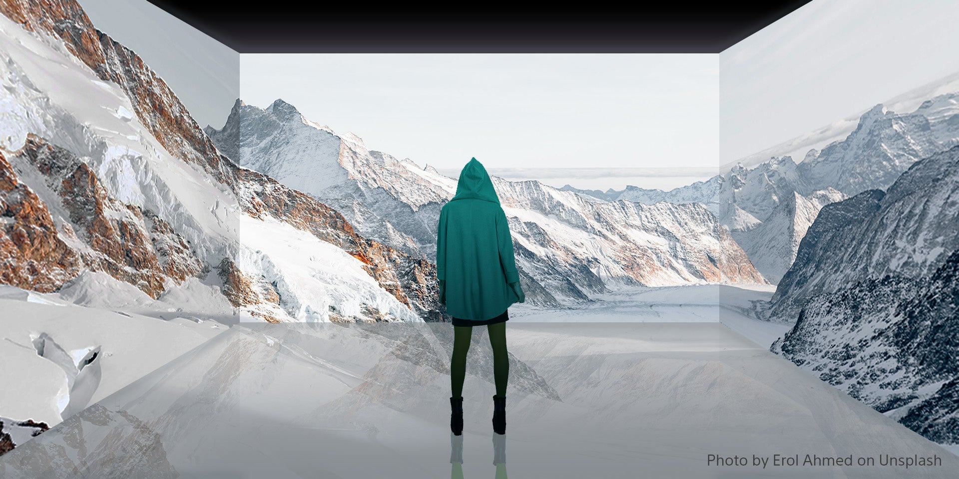 仮想空間に。高画質映像に囲まれることで、あたかもそこにいるかのよう
