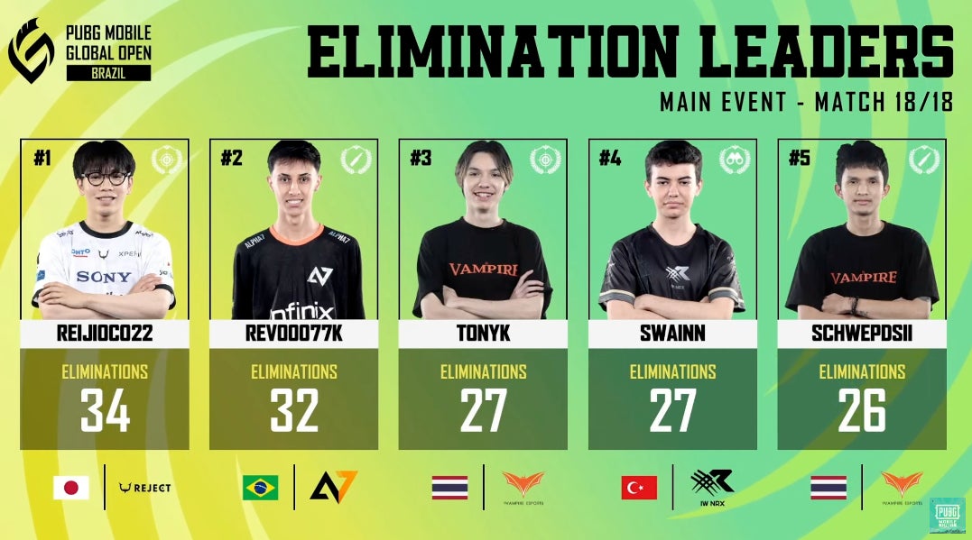 またキル数ではREJECTのReijiOcO選手が34キルを獲得し、世界の強豪を押し除け出場選手の中で1位に輝きました。