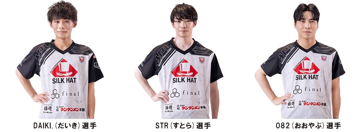 チーム「SILK HAT」は昨シーズンから引き続きDAIKI.選手、082選手と契約を結び、今シーズンからは新たにSTR選手を迎え、新生「SILK HAT」として生まれ変わりました!一人ひとりのパフォーマンスはもちろん、「SILK HAT」らしいチームワークの取れた戦略で昨シーズン以上の成績はもちろん「初優勝」を目指しチーム一丸となり戦っていきます!