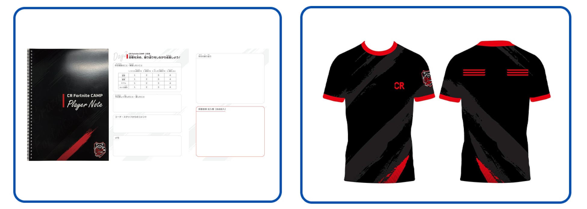 参加者全員に2日間の体験を冊子として”カタチ”に残せる「オリジナル冊子」と「イベント限定ユニフォーム」をプレゼント。ユニフォーム着用の宣材写真撮影やFortnite公式キャスターによる実況・インタビューで、プロ選手の臨場感を体感できます。