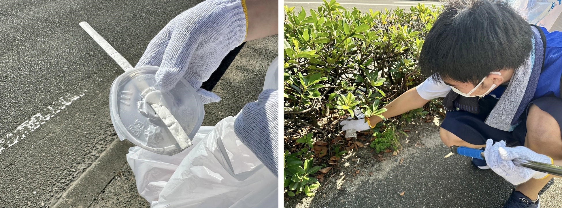 海に面した福岡県福津市。福津の街を見渡してみると、一見ごみはほとんど落ちておらず美しい街です。しかし、じっくりと探してみると、道路脇にはプラスチックごみやたばこの吸い殻が捨てられていました。