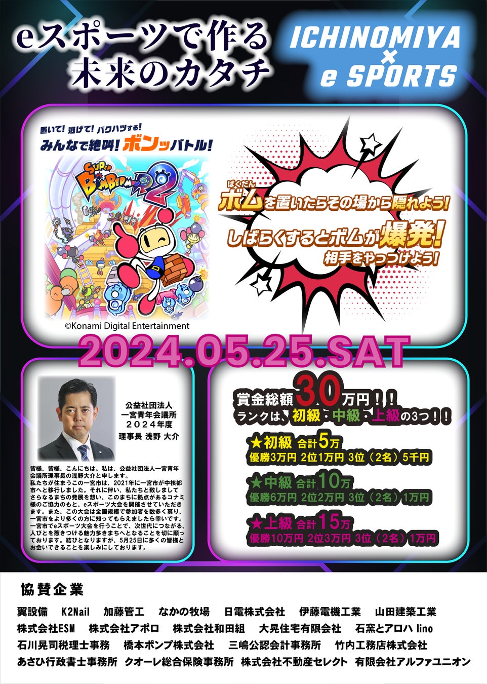 一宮市に拠点があるコナミさんのゲームソフトである、みんなが知っている『ボンバーマン』でeスポーツ大会!!