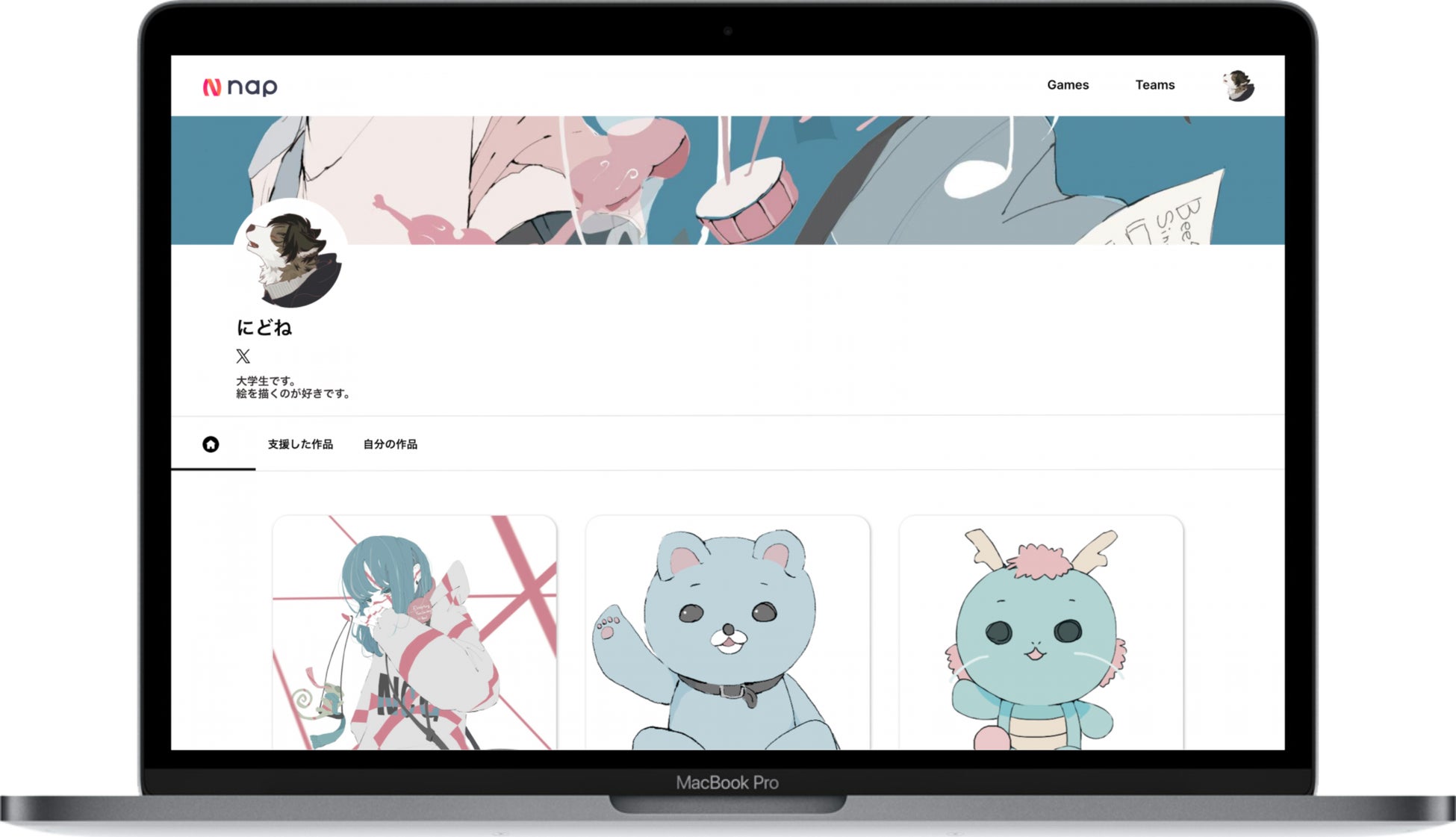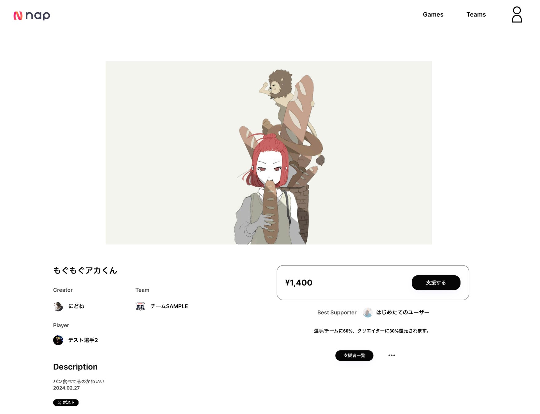 「nap」とは、eスポーツチームのファンアートを投稿・投げ銭できる応援プラットフォームです。