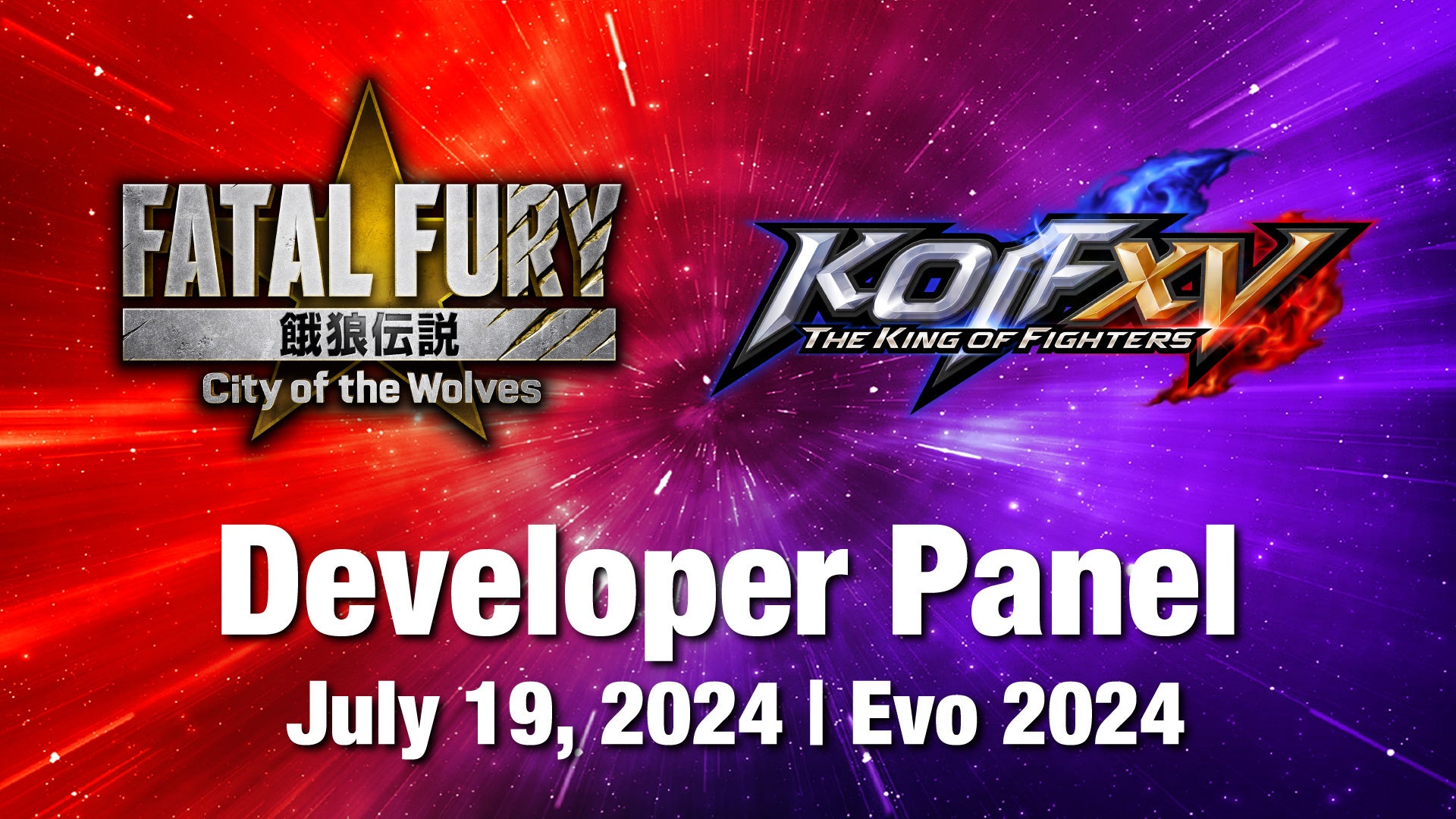 7月19日(PDT)に、『餓狼伝説CotW』と『KOF XV』の開発者によるパネルディスカッションを開催。『餓狼伝説CotW』の開発情報や『KOF XV』のスペシャルDLCキャラクターの情報も発表!ライブ配信もありますので、ぜひご覧ください。なお開催時間については、後日ご案内いたします。