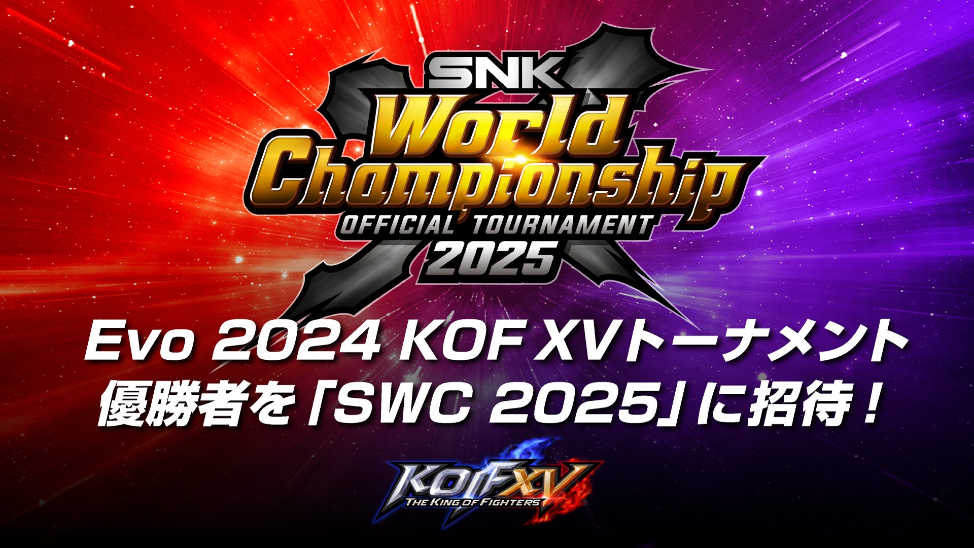 Evo 2024メインステージにて、『KOF XV』トーナメントを開催!優勝者は、SNK格闘ゲームの世界大会「SNK World Championship 2025」に招待!