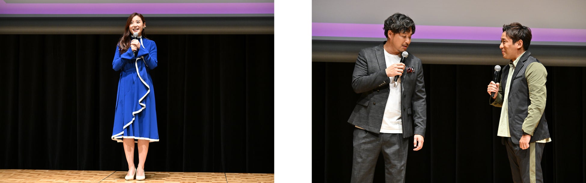 株式会社SANKYOの企業CMにも出演している時田さん。ブルーを基調に機動戦士ガンダムを意識したファッションで登場し、昨年に続きスペシャルサポーターに選ばれたことについて「またあの熱い戦いを目の前で見られるということで、今から興奮しています!今日はイヤリングもガンダム風のデザインを意識してきました!」と大喜び。“推しモビルスーツ”の話題になると、平子さんは「僕はジオング一択!」、酒井さんは「デザインが斬新なドラゴンガンダム!」、時田さんは「ウイングガンダムゼロ。羽の生えた豪華さと、ビームが強い!その豪華な見た目から女性人気も高いはず!」とモビルスーツトークに花を咲かせました。