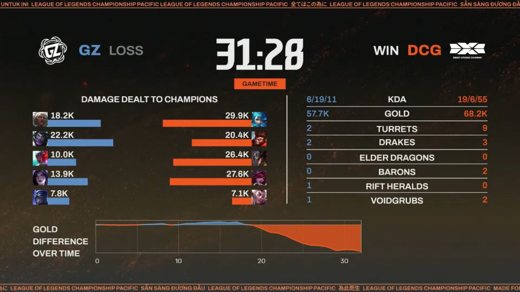 ▲DCG対GZ 第1試合 リザルト(本配信より引用)