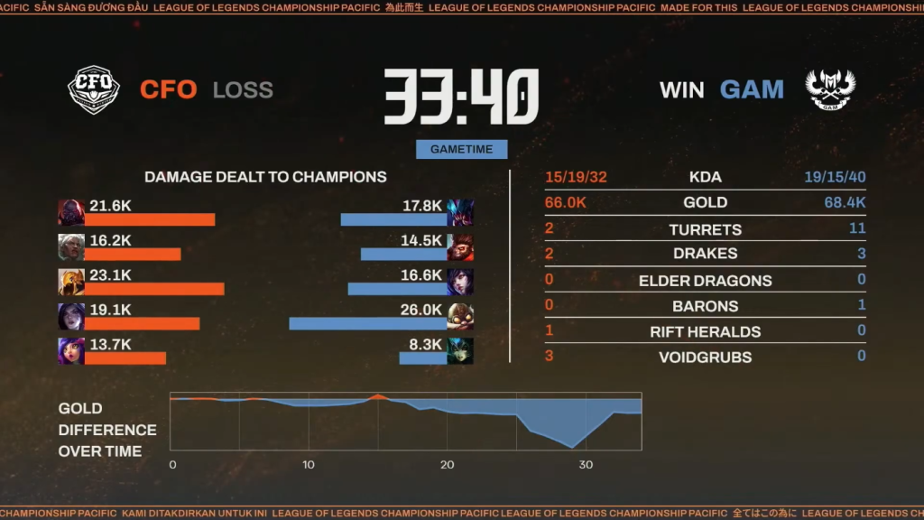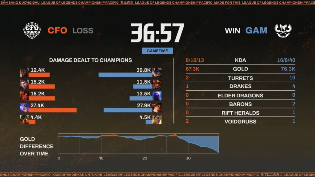 ▲GAM対CFO 第1試合 リザルト(本配信より引用)