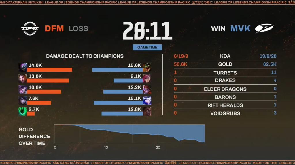 ▲DFM対MVK 第2試合 リザルト(本配信より引用)