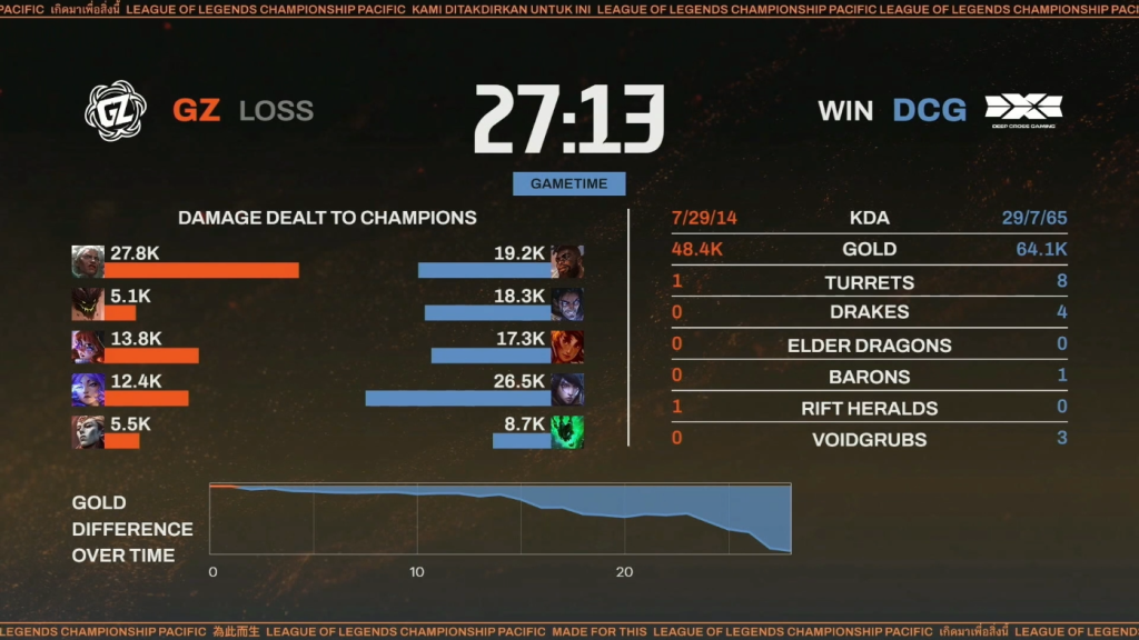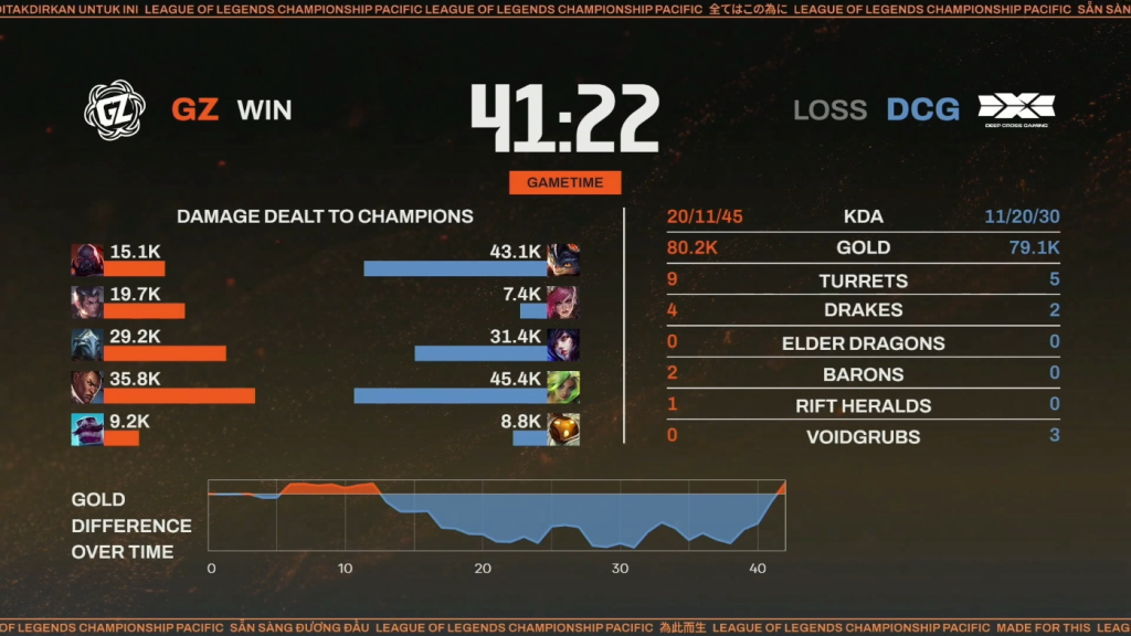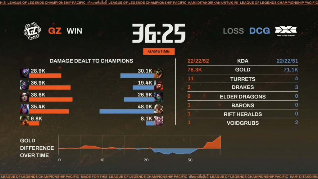▲GZ対DCG 第1試合 リザルト(本配信より引用)