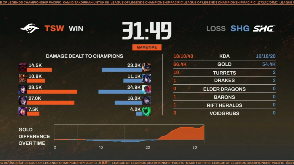 ▲TSW対SHG 第1試合 リザルト(本配信より引用)