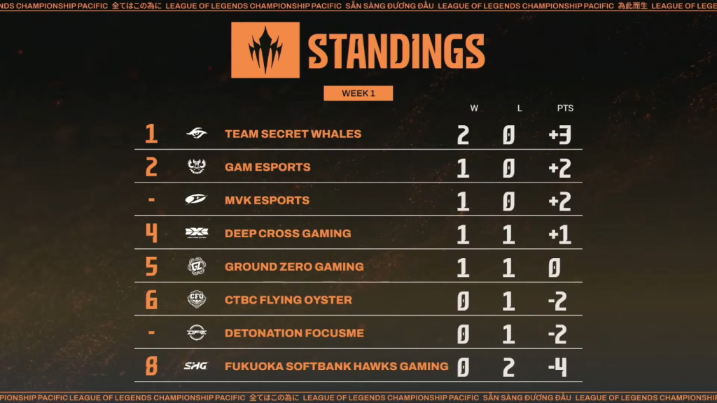 ▲LCP 2026 Split1 Week1 DAY3 最終リザルト(配信より引用)