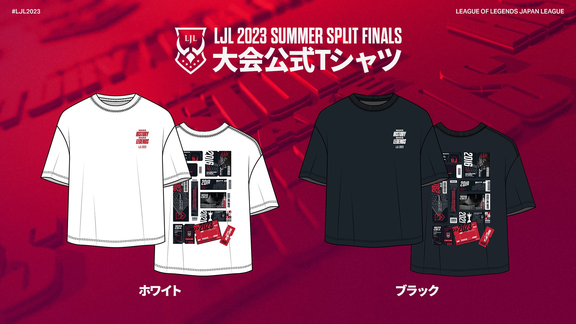 LJL 2023 Summer Split Finals 開催を記念して、大会公式Tシャツが発表。7月15日(土)13:00〜の先行抽選販売期間よりチケットとTシャツセットのお得なパッケージ「Tシャツセット(全席指定):¥10,500(税込)」をお買い求めいただけます。