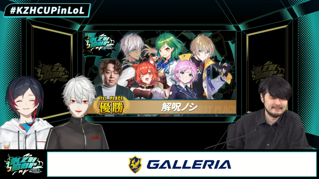 ▲「KZHCUP in League of Legends」優勝を果たした「解呪ノシ」メンバー(本配信より引用)