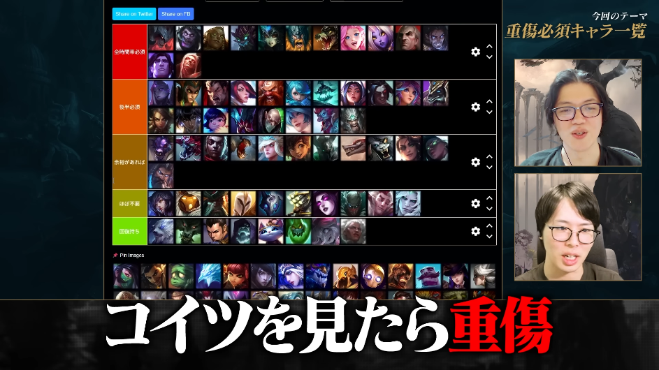 今回ご紹介するのは、SmashlogTV – LoLが投稿した「知って得する重傷必須チャンピオン一覧表」です(公開日:2025年9月19日)
