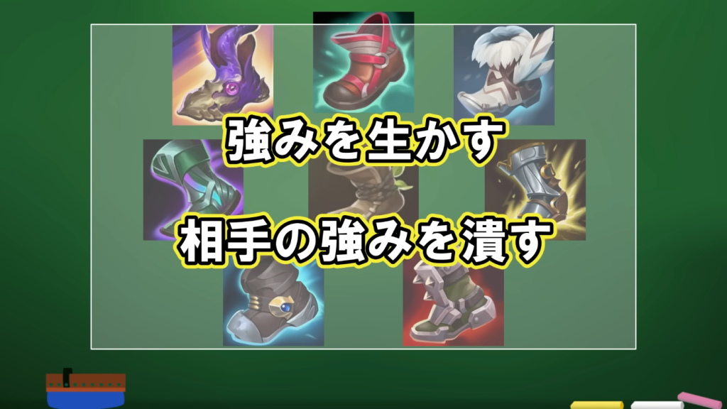 また、スキルの回転率を高めるアイオニアブーツや、魔法貫通を強化するソーサラーシューズの使い分け、さらにはロームに特化した選択肢など、自分のチャンピオンの長所を伸ばすべきか、それとも相手の脅威を封じるべきかという判断基準についても深く言及されています。