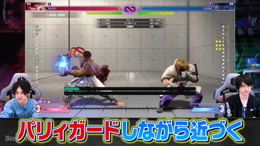 パリィは通常のガードよりもノックバックが抑えられるため、じりじりと距離を詰める際に非常に有効。相手にプレッシャーを与えて、安易な波動拳を抑制させることが可能です。