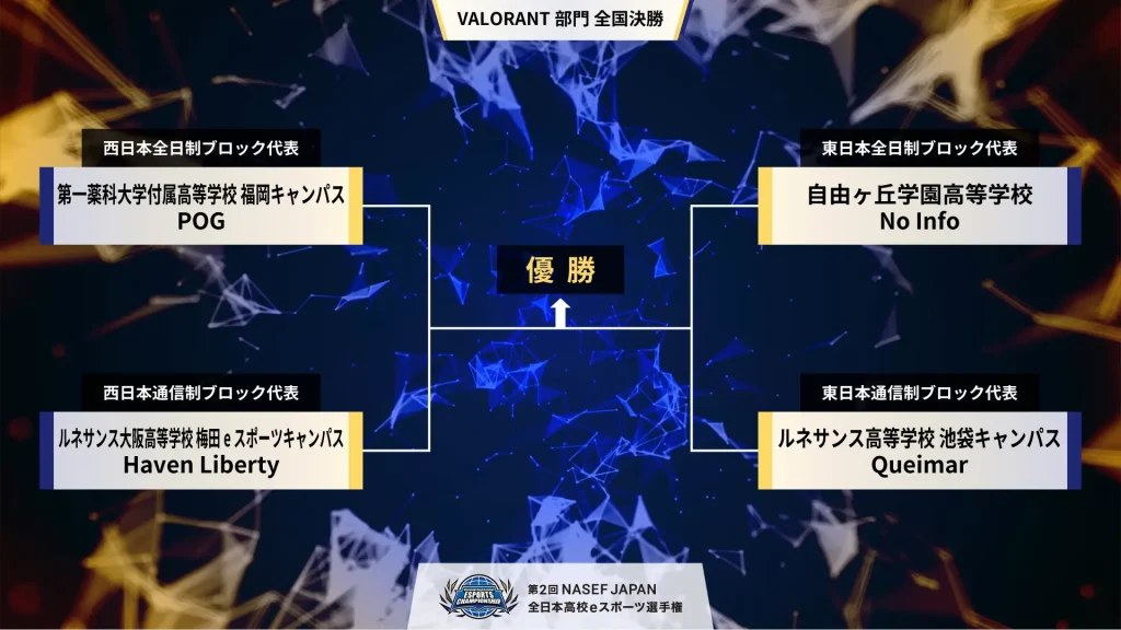 本稿では、第3回 NASEF JAPAN 全日本高校eスポーツ選手権『VALORANT』部門・全国決勝にフォーカスした試合結果をお届けします。