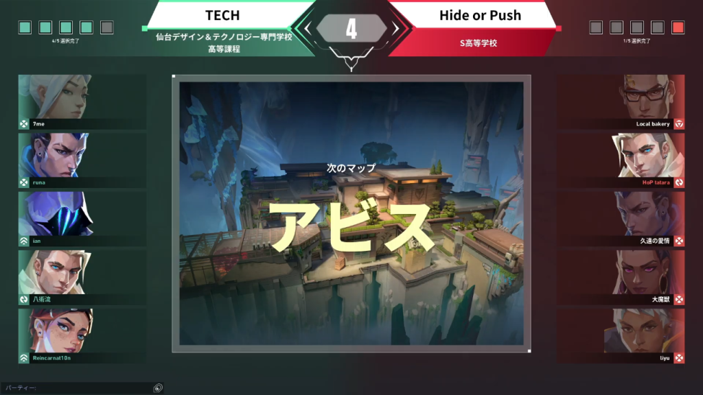 【準決勝】仙台デザイン&テクノロジー専門学校 高等課程(TECH) vs S高等学校(hide on push)【ABYSS】