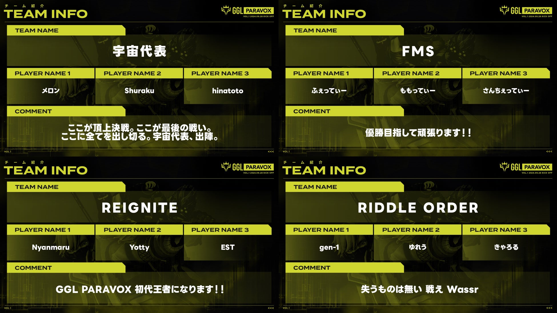 2024年9月に開催されたVOL.1 大会では、予選通算で17チームにご参加いただきました!