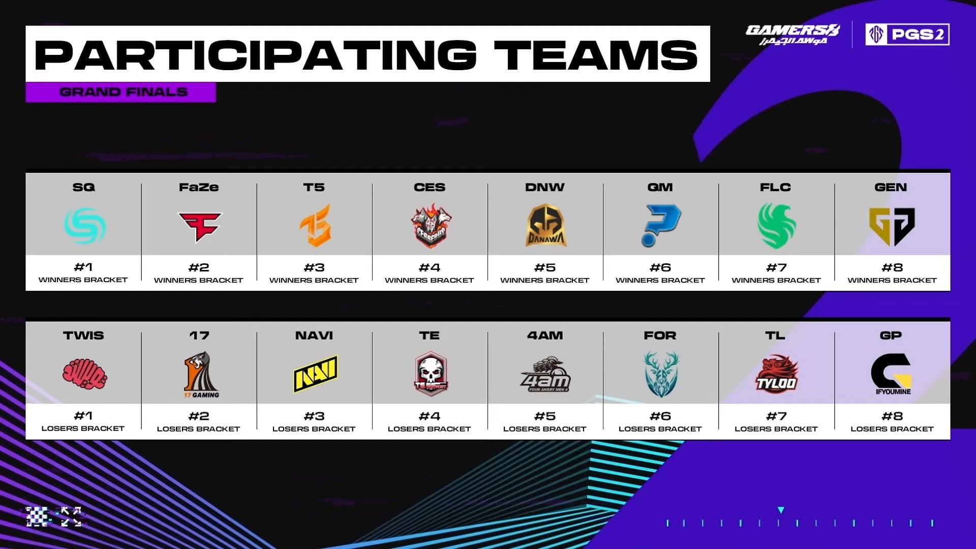 Grand Finalsは8月18日~20日までの3日間、6マッチずつ計18マッチで行われ、最も高い順位を記録したチームがPGS2のチャンピオンになります。