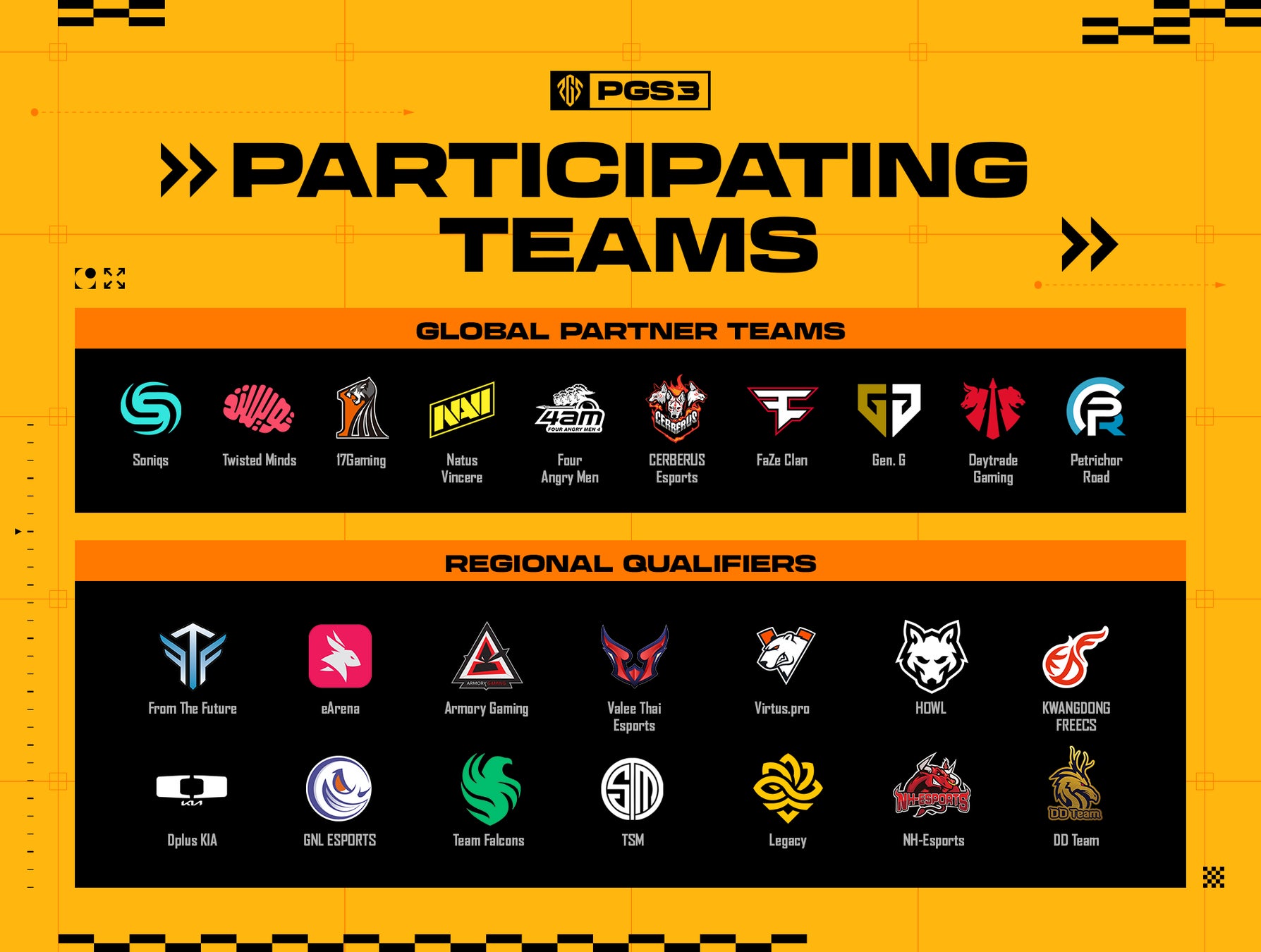 PGSは、世界中のトッププロチーム24チームが覇権を競う国際大会です。今年のPGS 3には、地域トーナメントで優れた成績を収めた14チームと10の「グローバルパートナーチーム」が参加します。
