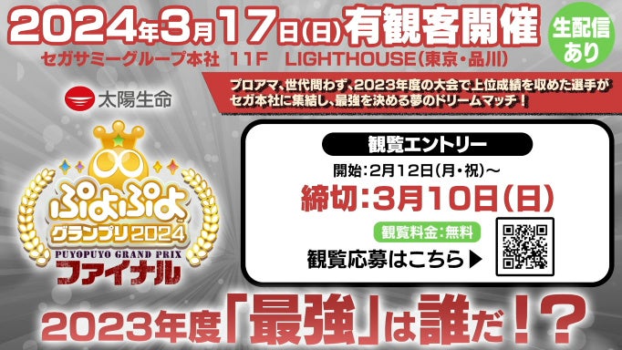 セガ公式大会「太陽生命 ぷよぷよグランプリ 2024 ファイナル」観覧募集 エントリーページ