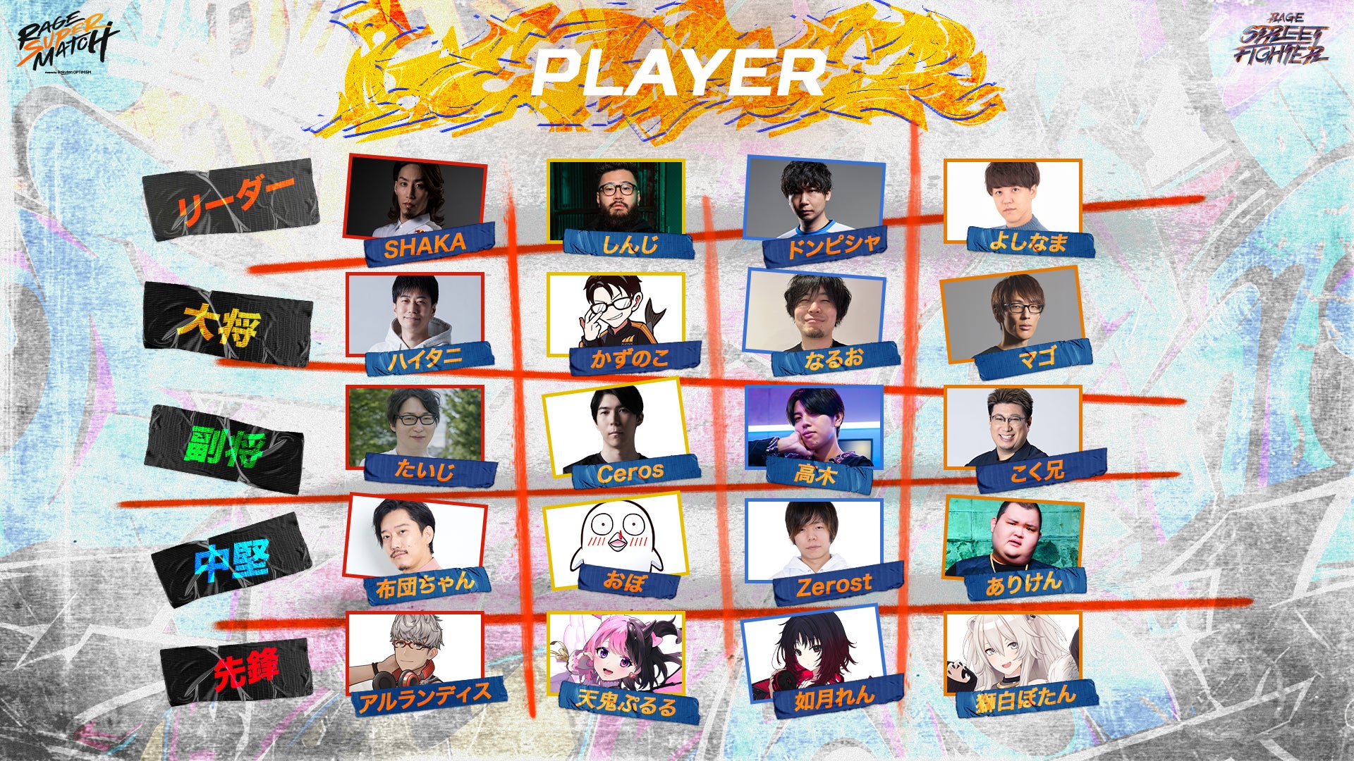 「STREET FIGHTER 6」における代表的な人気ストリーマーがチームリーダーを担当し7月15日(月・祝)に RAGE公式チャンネル(YouTube/Twitch)の事前配信でドラフト形式によりチームメンバー4名を決定します。
