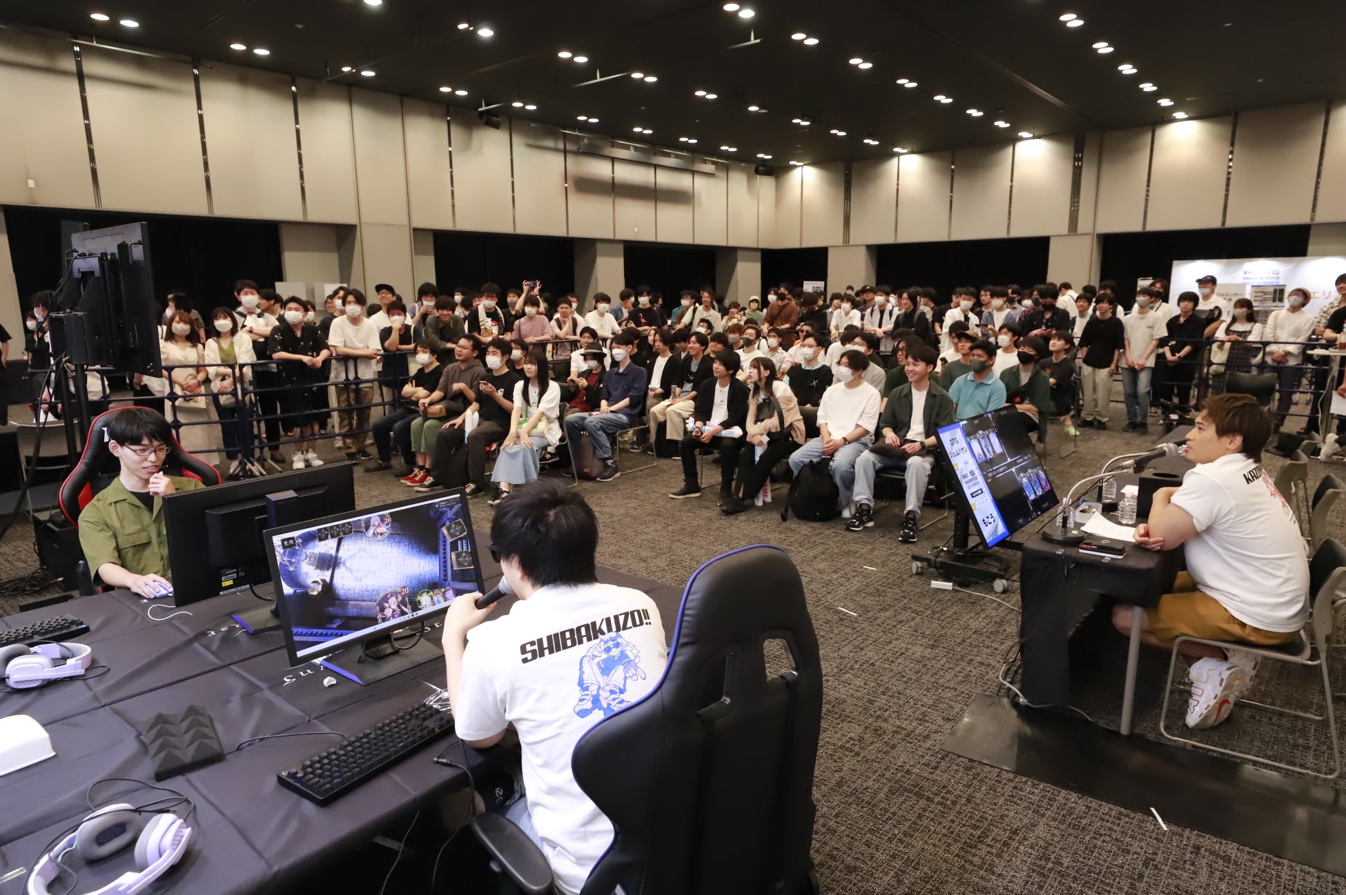 オフラインでの開催となったGRAND FINALSの舞台・ベルサール秋葉原にはファイナリスト8人が集結。会場では司会と進行を務めたテレビ朝日アナウンサーの布施宏倖さんと斎藤ちはるさん、実況の平岩康佑さんと友田一貴さん、解説のまるさんと海老原悠さんが多くの観客と共に大会の行方を見守りました。