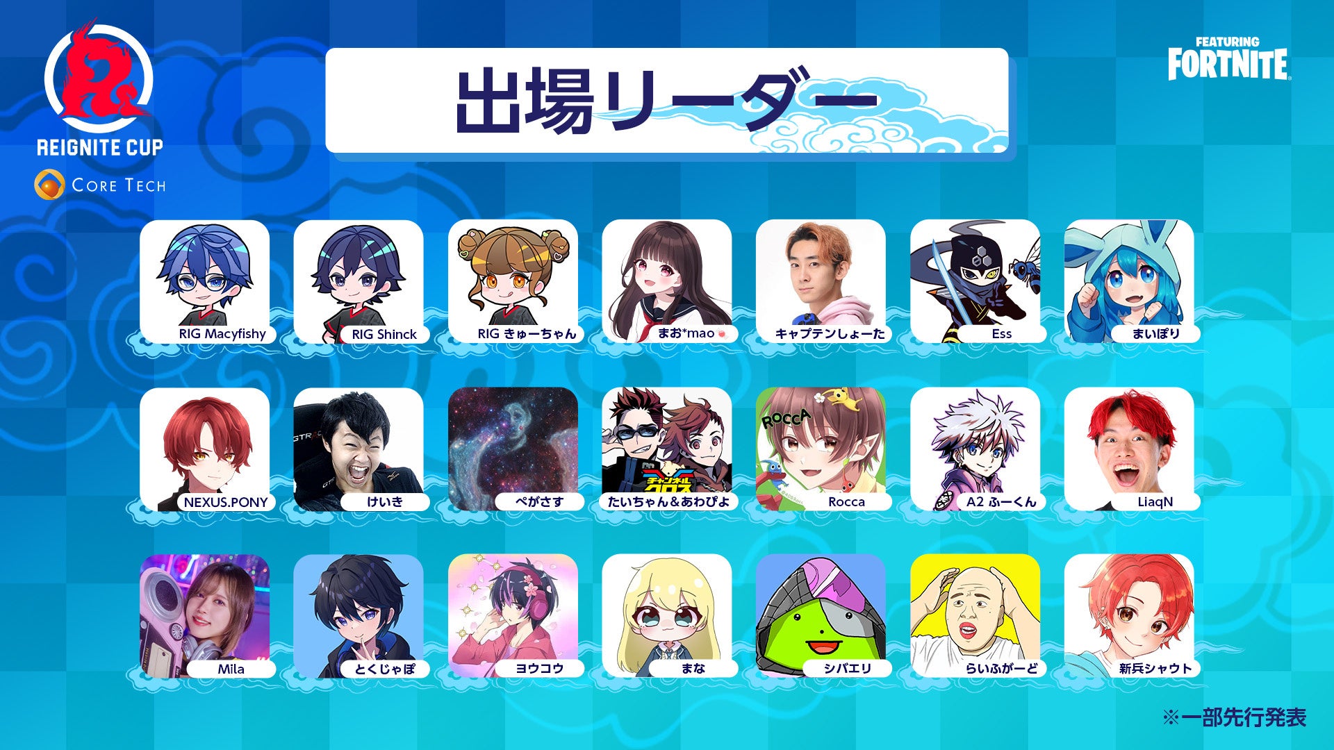 REIGNITE所属メンバーの「Macyfishy(めいしー)」「SHINCK(しんく)」「きゅーちゃん」の参加が決定しており、他にも「LiaqN(りあん)」さんや「キャプテンしょーた」さんといった豪華メンバーがイベントを盛り上げます。