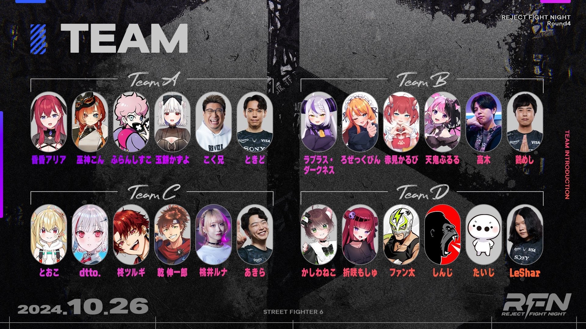 この度、株式会社REJECT(代表取締役:甲山翔也、以下、「REJECT」)は、ストリートファイター6の大会「REJECT FIGHT NIGHT Round4」を開催いたします。