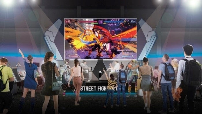 本企画のメイン会場である「セロシアホール」では、「スト6」のゲーム内で展開されているプレイヤーたちの交流の場「バトルハブ」が、「リアルバトルハブ in ラグナシア」として登場します。バーチャルやデジタルでは味わえない、生の没入体験が叶う空間です。会場中央の「センターステージ」では、「ストリートファイター6」を自由にプレイできるだけでなく、大型モニターによる迫力の大画面でプレイが可能!土日祝日は、MCによるプレイヤー名コールや派手な入場シーンを体験できるなど、eスポーツ大会さながらの演出を楽しめます。