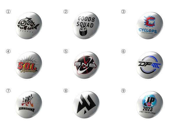 世界3地域で行われる「ストリートファイターリーグ 2023」に出場するチームのロゴをあしらったバッジが「BATTLE HUB」内「HUB GOODS SHOP」の商品ラインナップに登場!