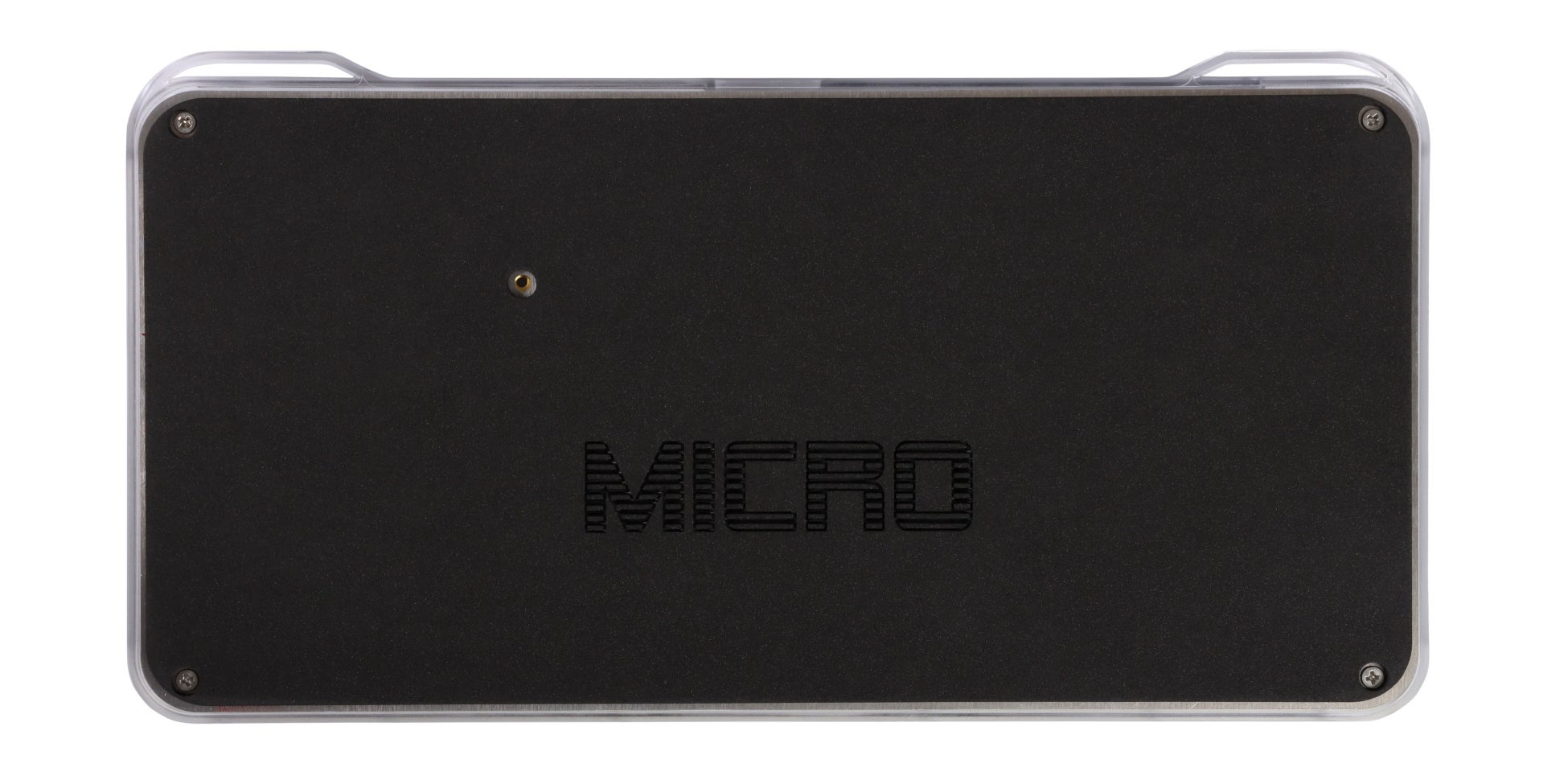 MICRO本体に装着しているブラックイメージのアートワークを、お好みの絵柄のプリントに取り替えることで、コントローラーの天板デザインをカスタマイズすることができます。(アートワークを取り替えるには、裏面からケースのネジを外す必要があります)