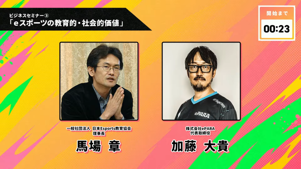 本セミナーでは、日本eスポーツ教育協会の馬場 章氏と株式会社ePARAの加藤 大貴氏により、教育現場における活用と障害者の社会参画という二つの側面からeスポーツの重要性が論じられました