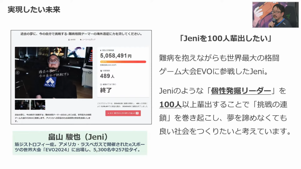 加藤氏は自身の福祉現場での経験から、高いPCスキルや言語能力を持ちながらも、適切な活躍の場がないために低賃金での就労を余儀なくされている障害者の現状を課題として捉えました。eスポーツができるということは、PC操作や円滑なコミュニケーション、目的遂行能力が備わっていることの証明であり、彼らがリモートワーク人材として企業に評価されるための強力な”仮説”となります。