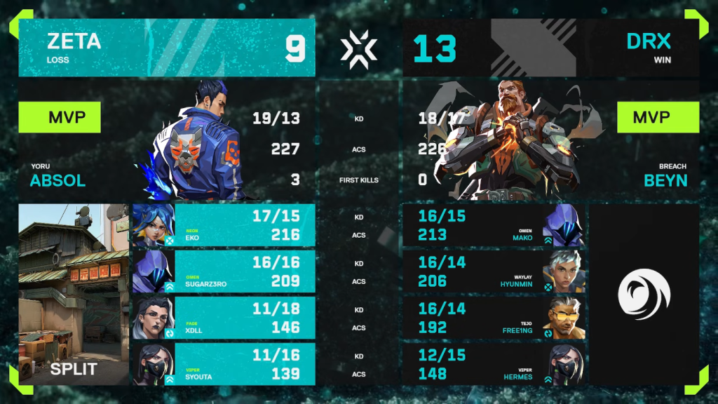 ▲ZETA対DRX 3rdマップ 試合リザルト(本配信より引用)