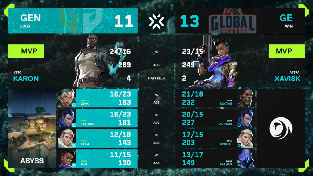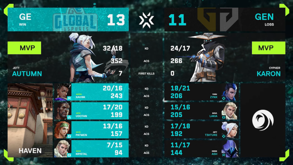 ▲GEN対GE 2ndマップ 試合リザルト(本配信より引用)