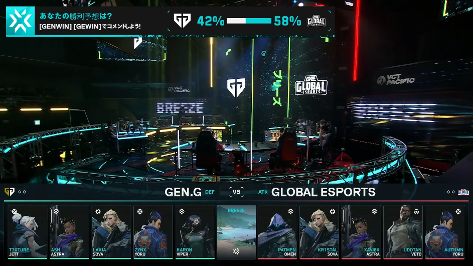 ▲GEN対GE 1stマップ エージェントピック(本配信より引用)